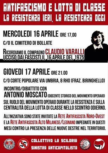 il 16 Aprile alle 17 presso il cimitero di Bollate si commemora uno dei caduti della Nuova Resistenza il Compagno Claudio Varalli.