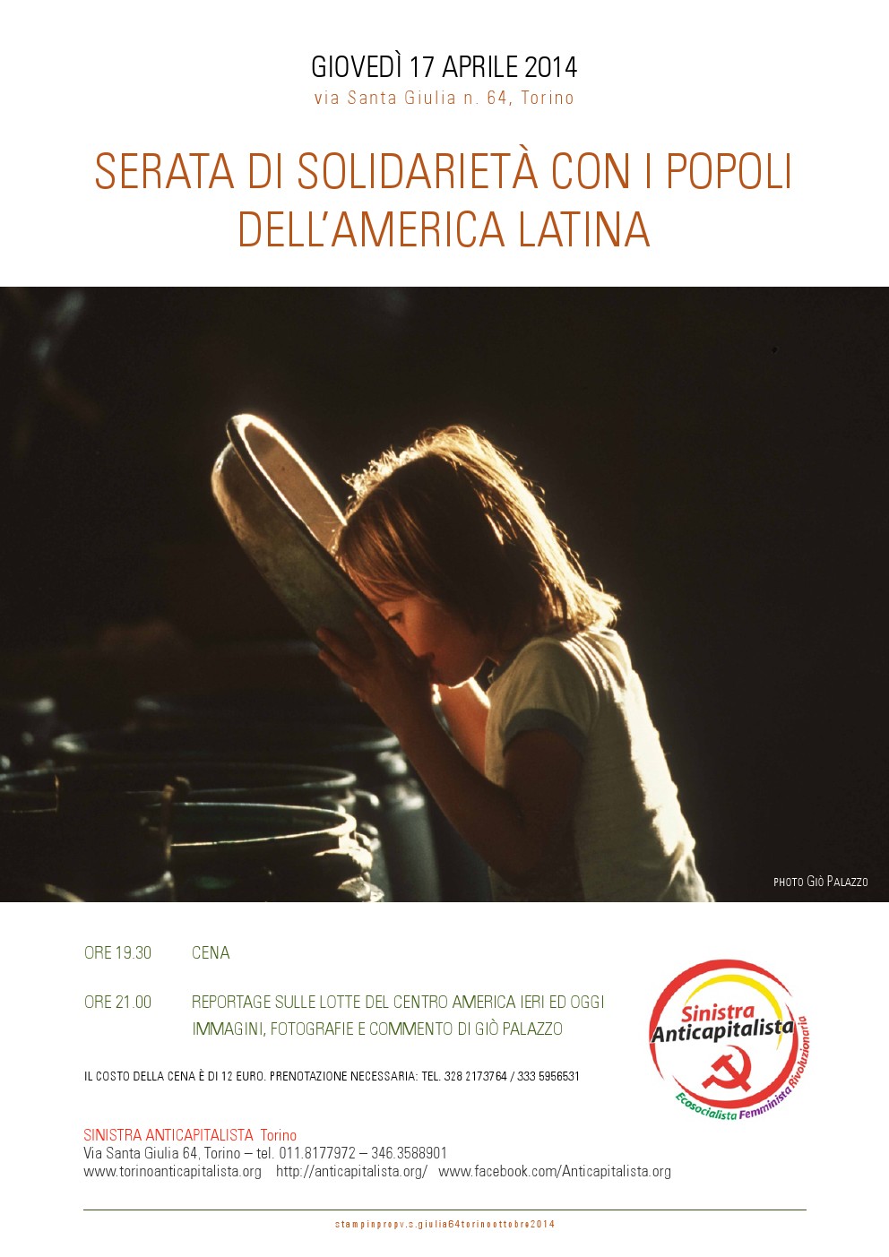 Torino: 17 aprile serata di solidarietà con i popoli dell’America Latina