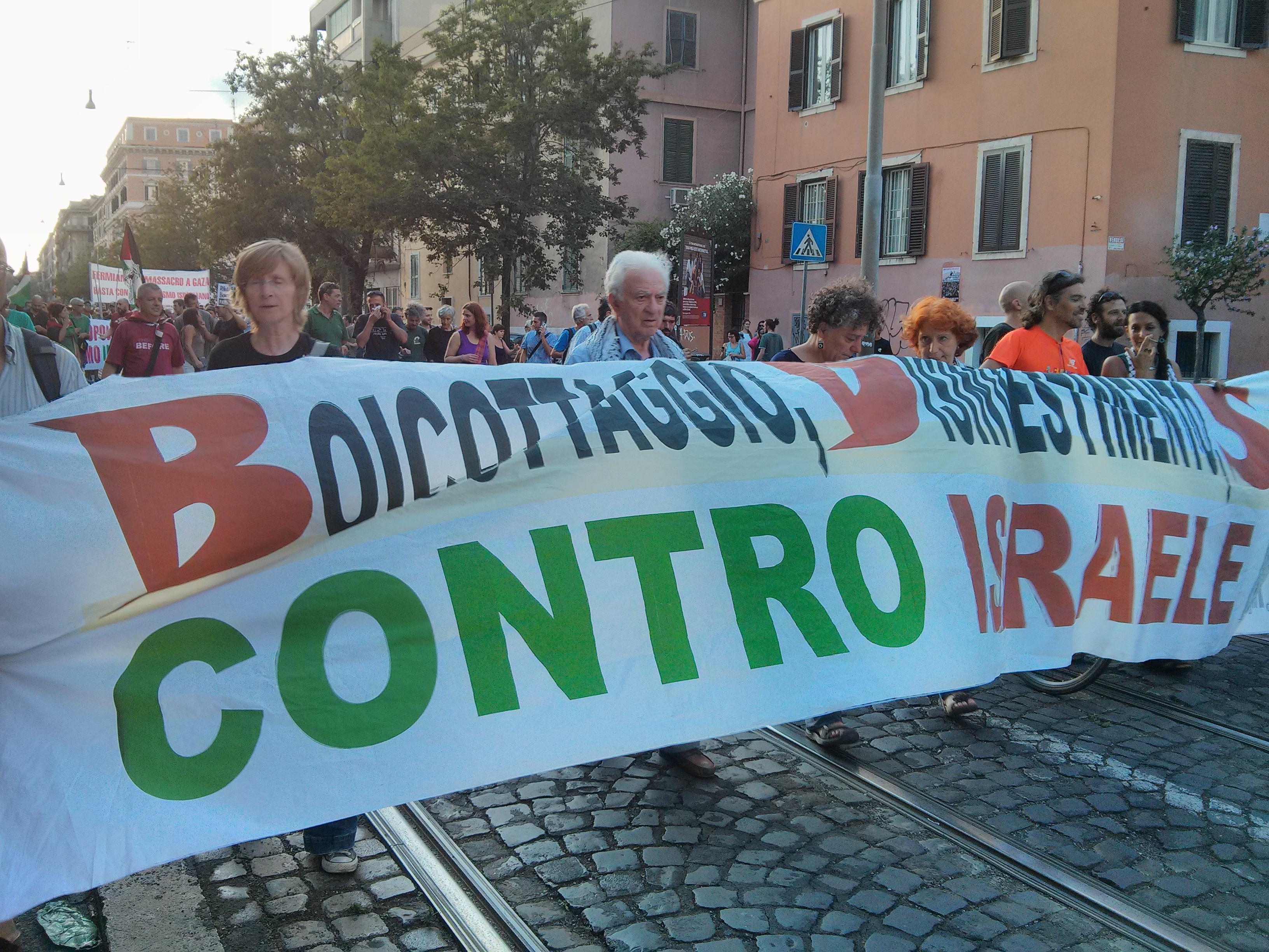 La Manifestazione di ieri a Roma segue le altre numerose e partecipate manifestazioni tenutesi in tutta Italia, da Lecce a Torino, contro il criminale comportamento dello stato israeliano ed a favore della liberazione della Palestina e del diritto del Popolo Palestinese all’autodeterminazione e precede la “giornata di azione” chiesta dai giovani palestinesi europei per il 26 luglio e che a Roma si concretizzerà con il presidio proclamato dai giovani Palestinesi italiani per sabato prossimo alle ore 18 a Roma in piazza del Colosseo di cui riportiamo l’appello di indizione: