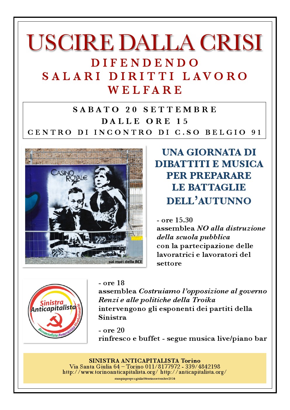 Torino 20 settembre: Uscire dalla crisi difendendo salari, diritti, lavoro, welfare