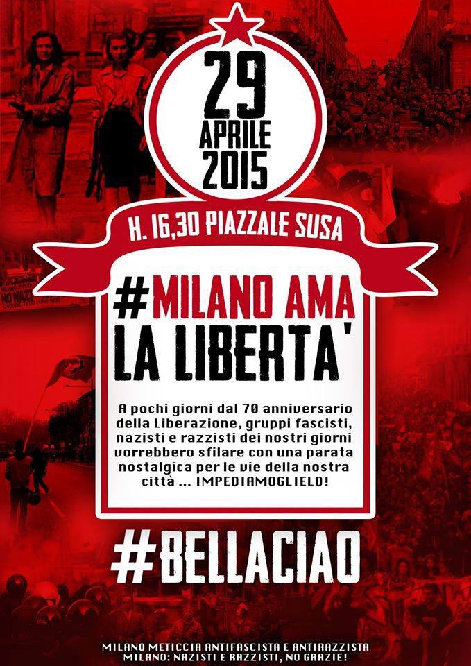 Facciamo vedere a questi nostalgici, ai loro padri, padroni e padrini politici, alle istituzioni cittadine che Milano ama la libertà e ripudia il fascismo, oggi come settanta anni fa!