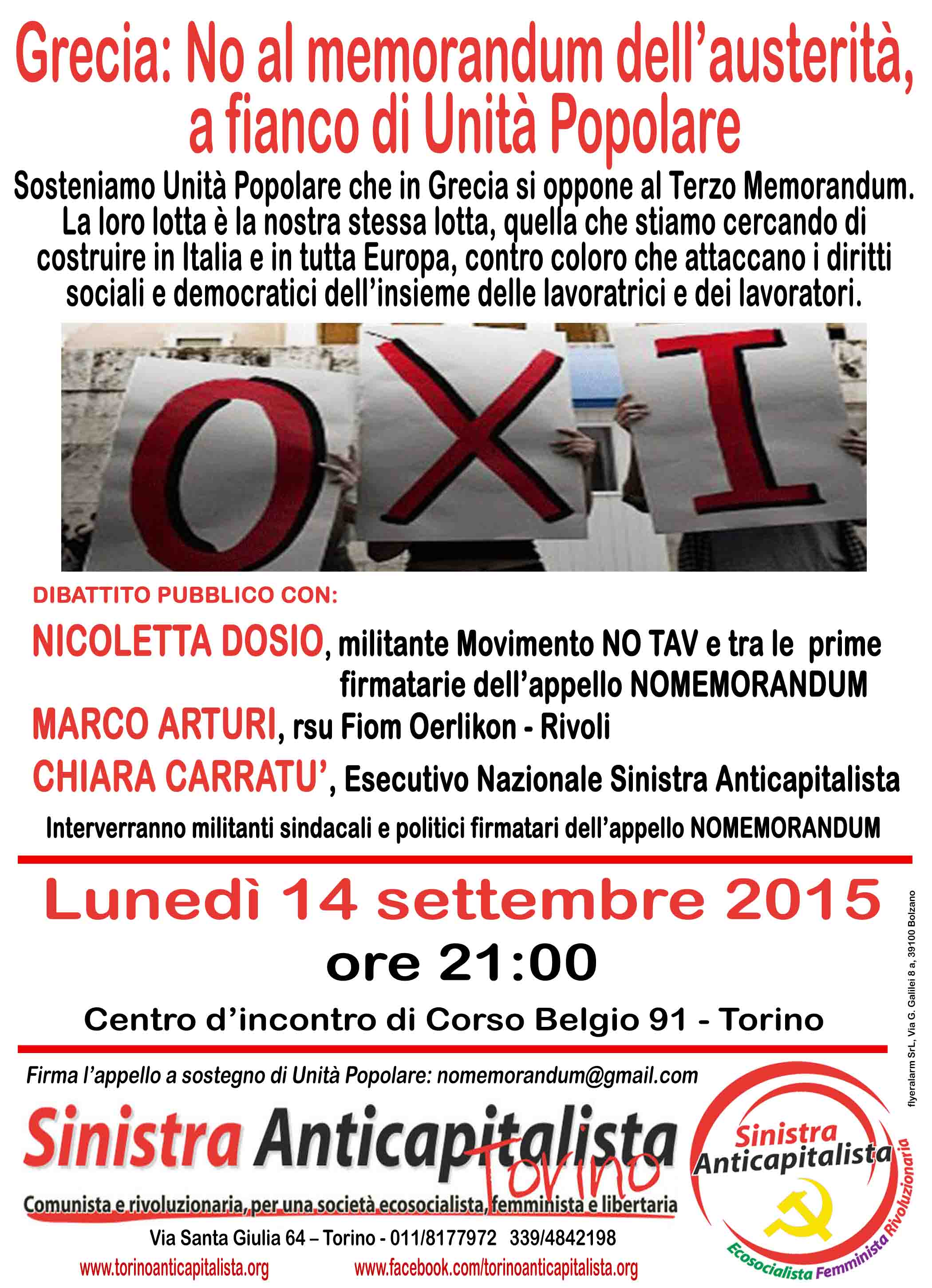 Torino, Grecia, No al memorandum, a fianco di Unità popolare