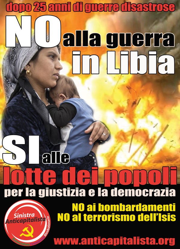 E’ l’ultimo passaggio di un’escalation politico-militare di cui l’Italia è stata una degli artefici dal marzo scorso (l’impegno bellico italiano era iniziato ben prima del via libera del sì del Consiglio superiore della Difesa) quando, non a caso, abbiamo dedicato un intero numero di «L’Anticapitalista» alla guerra imminente e alla posta in gioco per le varie potenze regionali e imperialiste. Liberare la Libia dal potenziale contagio islamista è solo la motivazione ufficiale per mettere in sicurezza gli ingenti investimenti occidentali su quella sponda del Mediterraneo. Perché, con fredda disinvoltura, gli stessi governi della coalizione anti Isis intrattengono rapporti di amicizia con dittatori sanguinari, da al Sisi a Erdogan fino agli ayatollah, e violano il diritto alla vita, la libertà di movimento e la dignità di centinaia di migliaia di profughi in fuga da questo e altri teatri della guerra permanente.