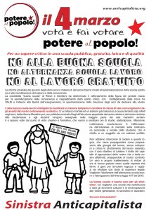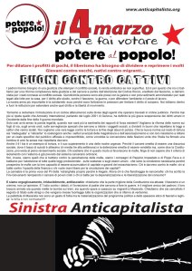 Pubblichiamo i volantini per la campagna elettorale di Sinistra Anticapitalista per la lista Potere al Popolo: