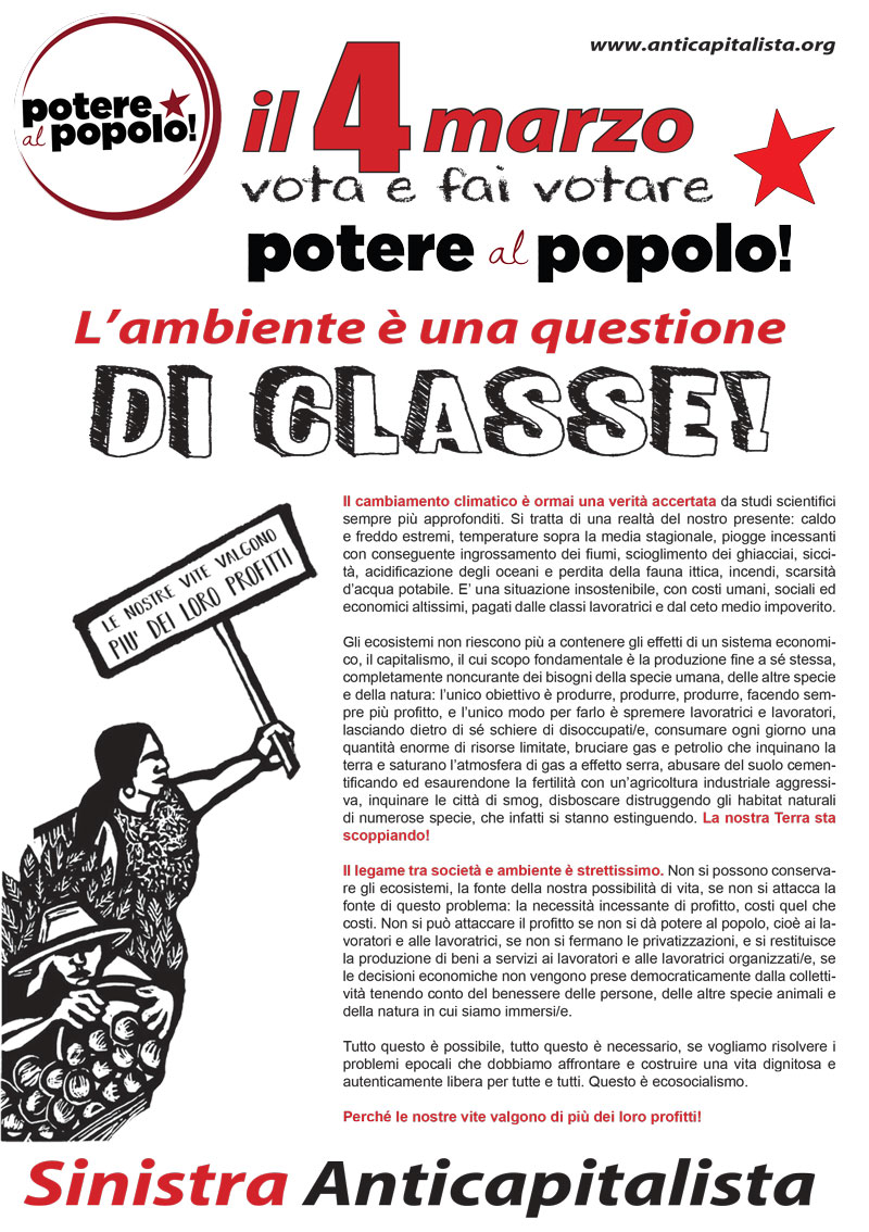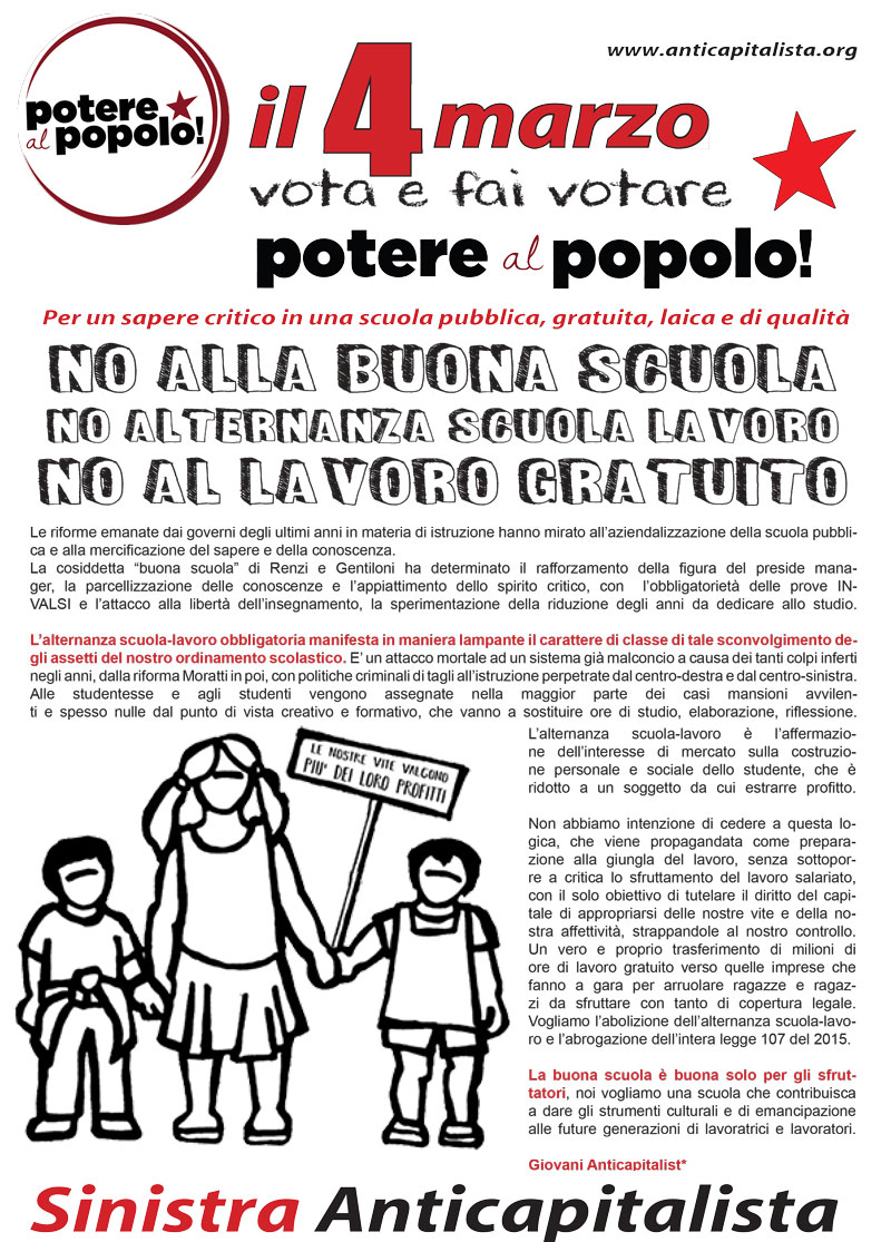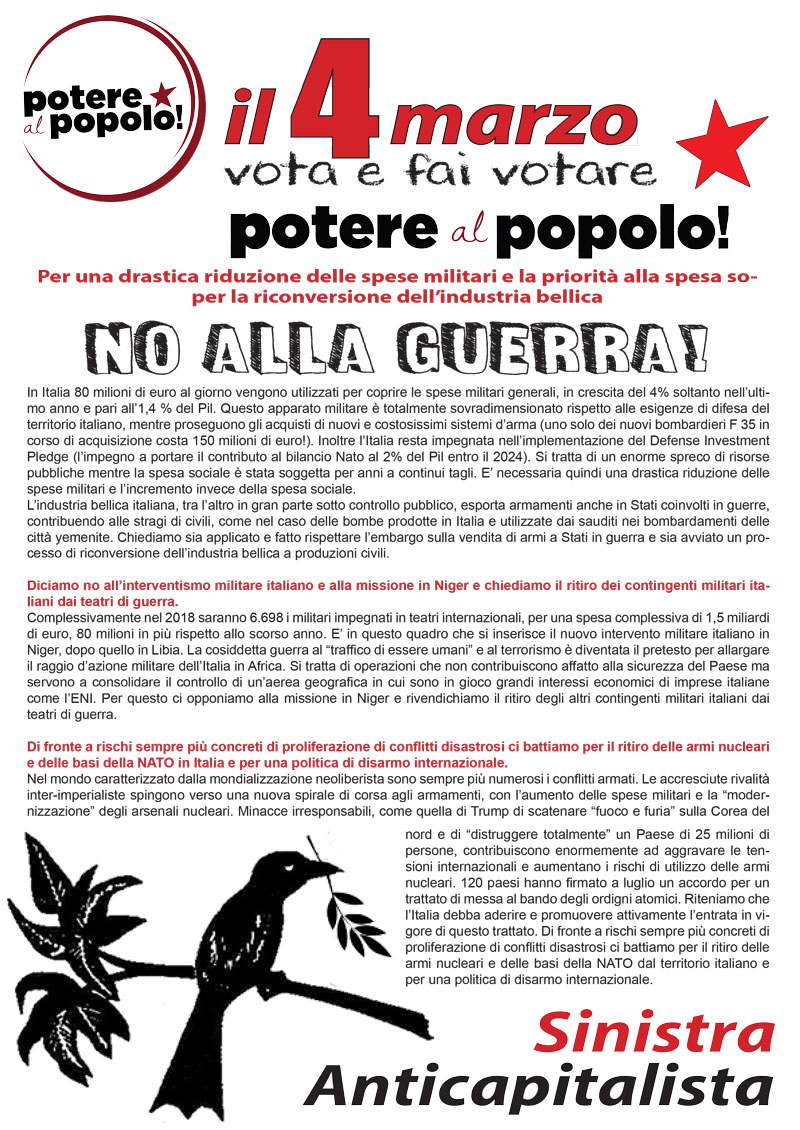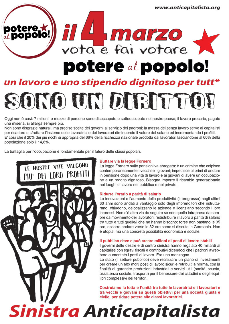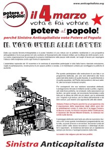 Pubblichiamo i volantini per la campagna elettorale di Sinistra Anticapitalista per la lista Potere al Popolo: