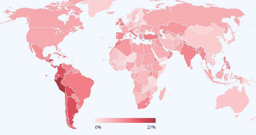 Now Wait for Last Year (Aspettando l’anno scorso). Questo potrebbe essere stato il titolo di questo contributo, giusto per rendere omaggio a Philip K. Dick (1928-1982). Esso si centra sulla questione dell’occupazione, aspetto che concentrerà le problematiche sociali del prossimo periodo. Innanzi tutto, bisognerebbe avere idea delle dimensioni di questa crisi e dei suoi devastanti effetti sull’occupazione. Il bilancio realizzato dalla OIL (Organizzazione Internazionale del Lavoro)[1] è illuminante: “la perdite in ore di lavoro del 2020 sono state circa quattro volte più importanti di quelle registrate nel periodo della crisi finanziaria mondiale del 2009”. E il mondo intero è stato colpito dal fenomeno, come illustra questa mappa realizzata dalla OIL che stima le perdite di ore di lavoro dalla fine del 2019.