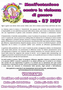 Volantino: Manifestazione contro la violenza di genere – Roma 27nov