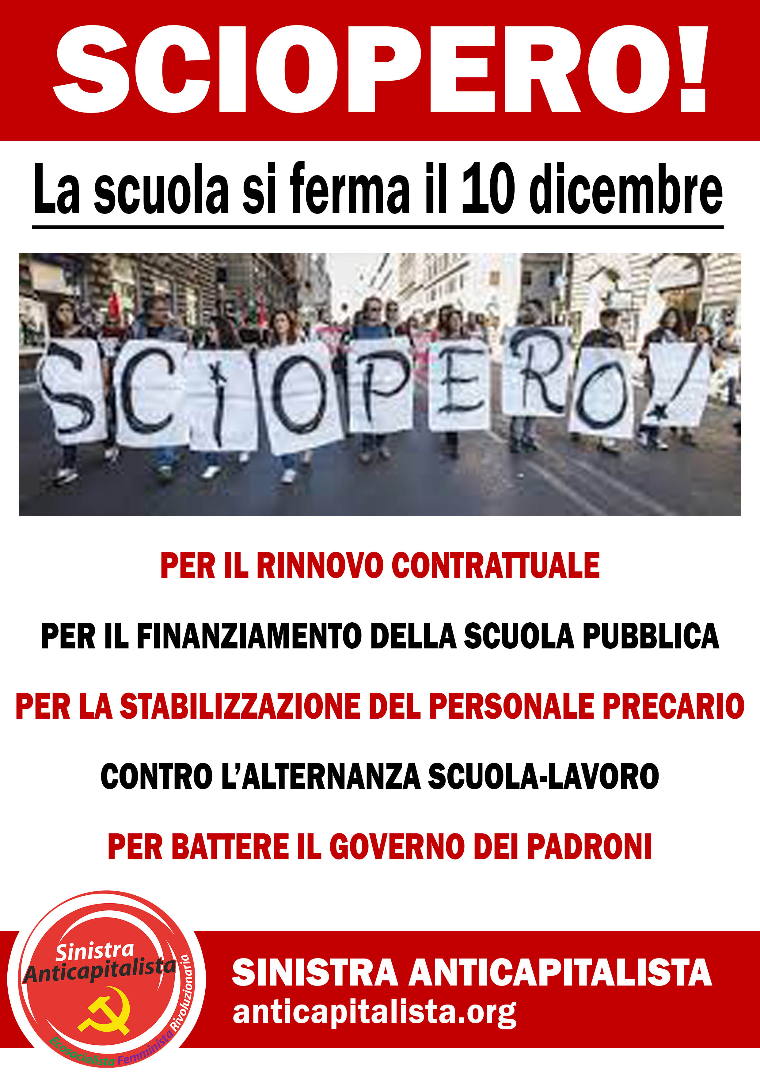 Il disagio degli studenti si è già espresso con le occupazioni, gli scioperi e le manifestazioni, finalmente anche i sindacati della categoria hanno deciso di proclamare lo sciopero, che deve essere una prima tappa di un movimento per la riqualificazione della scuola pubblica, in solidarietà con le altre categorie di lavoratori e lavoratrici in lotta: