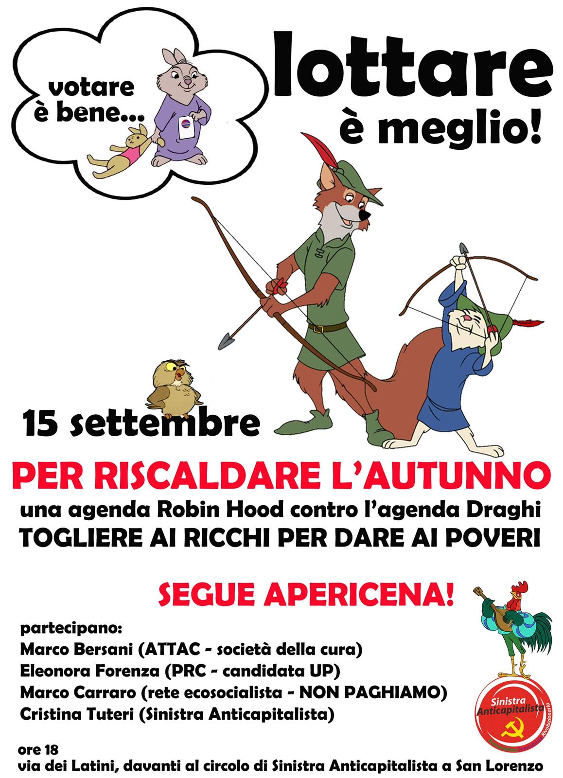Votare è bene, lottare è meglio – Riscaldare l’autunno, un’agenda Robin Hood contro l’Agenda Draghi