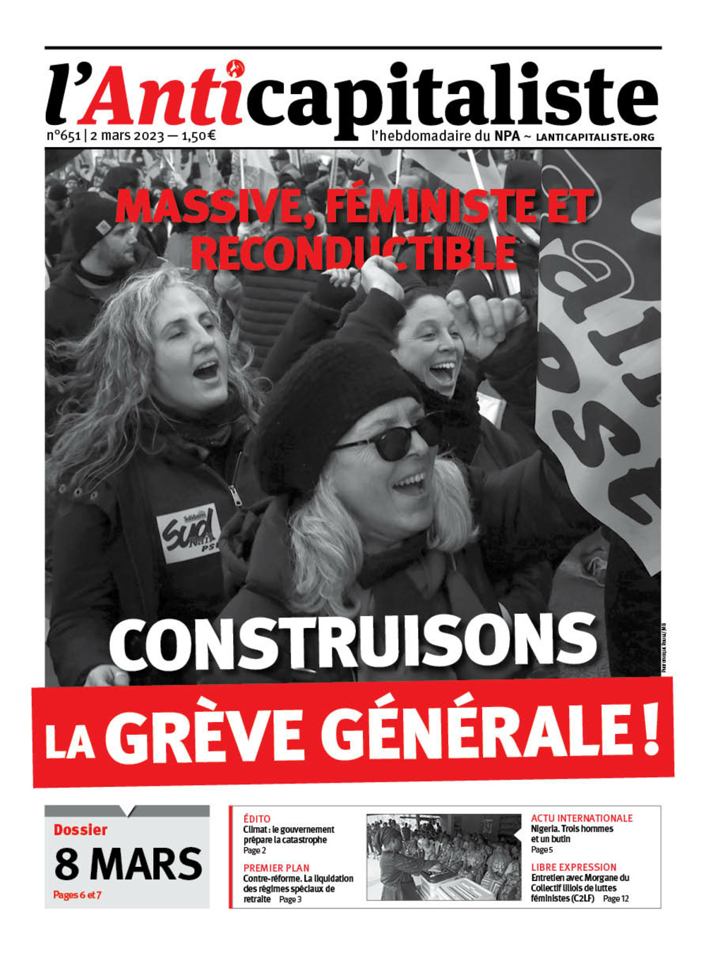 Altra lezione del periodo: come in ogni momento di forti lotte collettive della nostra classe sociale, l’estrema destra non c’è più al centro delle discussioni. Organizzare la lotta di classe, infatti, è il modo migliore per farla tornare. Da qui i tentativi di Raduni Nazionali per tornare nel panorama mediatico con la mozione di censura nell’Assemblea nazionale. Per quanto riguarda la sinistra, corre dietro al movimento ; i suoi leader riprendono gli slogan sindacali ai loro account, ma tutti sanno che non sono stati loro a consentire il movimento attuale e le sue prospettive di esistere. Ma lasciamoli festeggiare la grande vittoria parlamentare di non recepire l’articolo 2 della legge, vale a dire il ritiro dell’indice-senior… che tutti sono