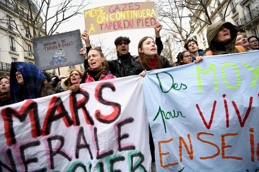 Gli slogan non cambiano da due mesi: il ritiro della riforma delle pensioni è chiesto da tutti, ovunque. Una rabbia sommessa viene spesso espressa di fronte all’ostinazione del governo, al suo rifiuto di non ascoltare, di non muoversi. A questo si è aggiunto un nuovo oggetto di rabbia e tensione: la violenza della polizia.