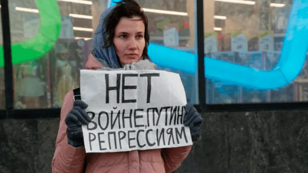 Questo articolo è stato inviato da Boris Kagarlitsky, socialista e prigioniero politico russo contro la guerra, il 18 febbraio dalla colonia penale di Torzhok, in Russia, dove sta scontando una condanna a cinque anni per “giustificazione del terrorismo”. Il ritardo nella pubblicazione è dovuto alle difficoltà di trasmissione in Occidente. (Nell’immagine in alto una manifestante a Mosca con un cartello “No alla guerra di Putin e alla repressione”)
