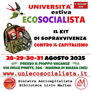 La seconda edizione dell’Università ecosocialista d’estate, organizzata da Sinistra Anticapitalista e dalla Biblioteca Livio Maitan, si terrà a Marina di Massa dal 28 al 31 agosto 2025.