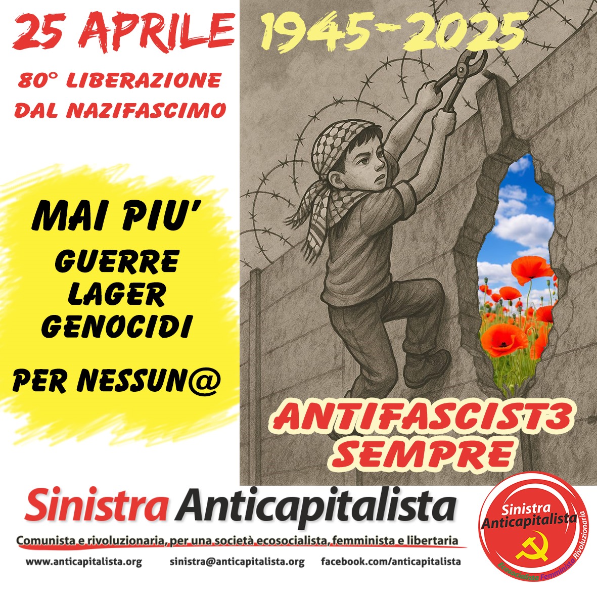 Far vivere l’antifascismo necessario ed indispensabile oggi significa ripartire dalla solidarietà tra le lavoratrici e i lavoratori, autoctoni e migranti, contro ogni forma di razzismo per una Europa sociale, aperta e solidale. L’Europa di Von der Leyden e di Draghi, l’Europa dei fabbricanti di armi e dei capitalisti non è la nostra Europa; siamo per una Europa unita della lavoratrici e dei lavoratori, per una Federazione ecosocialista degli Stati del continente.